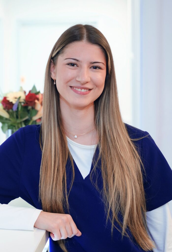 Das Assistieren bei Behandlungen finde ich sehr spannend. Ich lerne jeden Tag etwas Neues dazu und ergänze mein Wissen. Die Zusammenarbeit im Team als auch mit den Patienten bereitet mir sehr viel Freude.